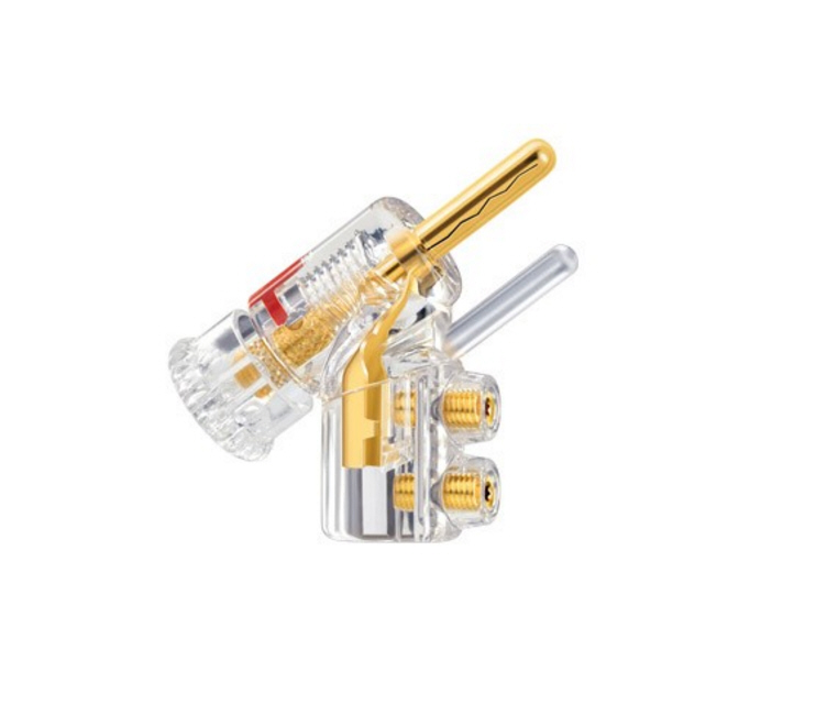 Tento banánový konektor nextgen ™ je jemne tvarovaný a vyrobený z rýdzej medi. Na ochranu pred oxidáciou je priamo bezniklovo pozlátený. Tým sa zachová jeho vysoká vodivosť a nemajú naň vplyv rušivé magnetické vplyvy. Kontaktný kolík je tvarovaný tak, že jeho tri segmenty so zaskrutkovaním tŕňa rozťahujú a konektor pevne uchytí v každom reproduktorovom termináli. Tento vysoký prítlak na kontakty zaručuje stále nízke prechodové odpory.