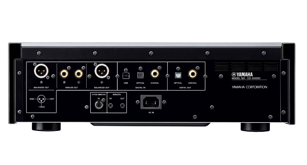 Vzhľadom na to, že zdroje zvuku s vysokým rozlíšením sú dnes stále bežnejšie, navrhli sme CDS3000 pre optimálny pôžitok z týchto zdrojov s vynikajúcou D/A konverziou a vyváženým výstupom signálu jednotky a vybavili sme ho vstavanou funkciou USB DAC, ktorá umožňuje priame vstup digitálneho zvuku (z počítača atď.) cez konektor USB. USB DAC využíva originálny IC, vyvinutý špeciálne pre Yamahu. Má vnútorné hlavné hodiny a môže vykonávať prenos s nízkym jitterom alebo prijímať signály bez toho, aby bol synchronizovaný s hlavnými hodinami v PC. Jednotka je kompatibilná s digitálnym zvukom s rozlíšením až 192 kHz/24 bitov.