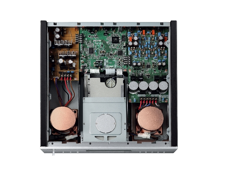CD-S3000 používa metódu dvojitého napájacieho transformátora, ktorá úplne oddeľuje digitálne a analógové obvody od napájacieho zdroja a každý je vybavený vlastným vyhradeným napájacím transformátorom. Oddelenie digitálnych/analógových obvodov od transformátora eliminuje zhoršenie kvality zvuku spôsobené rušením a šumom medzi blokmi digitálnych a analógových obvodov, ku ktorému dochádza pri použití jedného digitálneho/analógového napájacieho zdroja. Výsledkom je výnimočne čistá a nízkošumová reprodukcia analógového zvuku. Výkonový transformátor je toroidný transformátor s nízkym magnetickým zvodom, ktorý pri digitálnych aj analógových jednotkách znižuje nepriaznivý dopad na signál čítaný z disku. Po podrobnom výskume založenom na skúšobnom počúvaní sme napájací transformátor uzavreli do pomedeného puzdra, aby sme znížili dopad magnetického úniku a vibrácií. To vytvára jemný, pokojný a dokonca priestranný zvuk vďaka vylepšenej reprodukcii podrobných signálov. To je jedným z hlavných cieľov radu S3000 zabezpečiť, aby aj jemné, mäkké zvuky, ako sú zvuky strunových nástrojov, boli reprodukované presne s bohatou výrazovou silou.