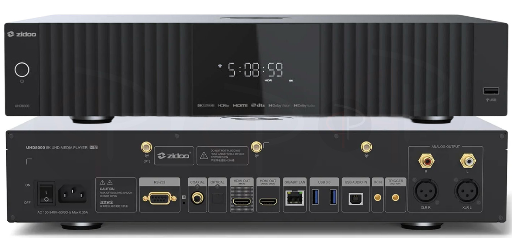 UHD8000 je 8K multimediálny prehrávač kompatibilný s Dolby Vision a HDR10+ a hudobný streamer, ktorý podporuje Hi-Fi streamovanie a dekódovanie. Vyznačuje sa vynikajúcim spracovaním, je vybavený výkonným čipsetom Amlogic S928X-K a 8GB DDR4 + 64GB eMMC veľkým úložiskom. Spoločnosť Zidoo ako prvá vyvinula technológiu oddelenia zvuku a obrazu s duálnym HDMI portom založenú na tejto čipovej sade, dosiahla to pomocou dvoch vlastných čipov a používa technológiu digitálneho oddelenia na izoláciu rušenia.